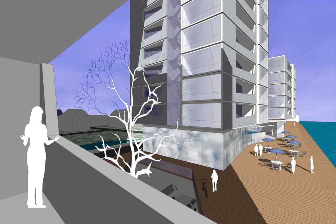 Along the Gouwe river lays a strip of land with great potential. oRb is commissioned for a series of towers with apartments for starters, combined with facilities. oRb kept an open appearance with slender towers on a slightly raised wooden deck, and lowering the parking underneath. The deck serves as a plaza for the services, gives access to the waterfront, and views along the Gouwe.