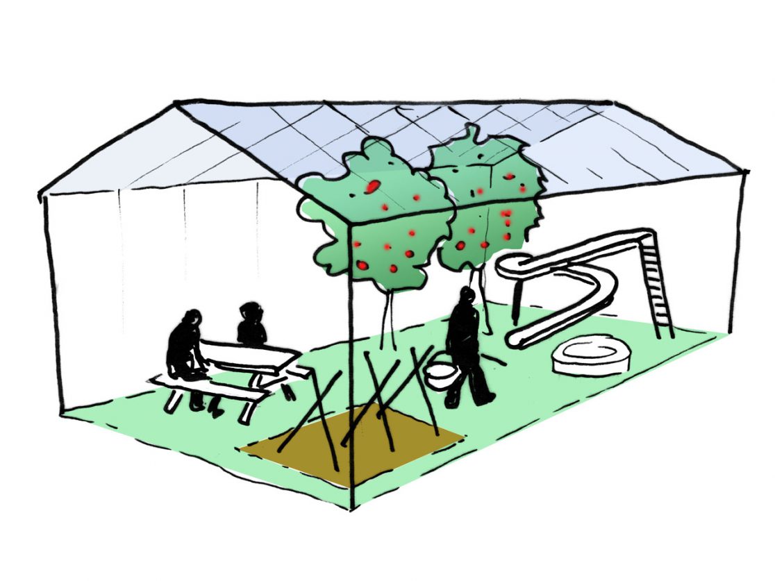 The restaurant will be executed as an outdoor area of 3,700 m2 covered with a glass greenhouse. All the catering and food experience will be placed in this indoor/outdoor space. The glass house ensures a year around comfortable outdoor experience in the moderate Dutch climate. The restaurant is approx. 250 m2 and is equipped with a terrace in and next to the covered outdoor area.