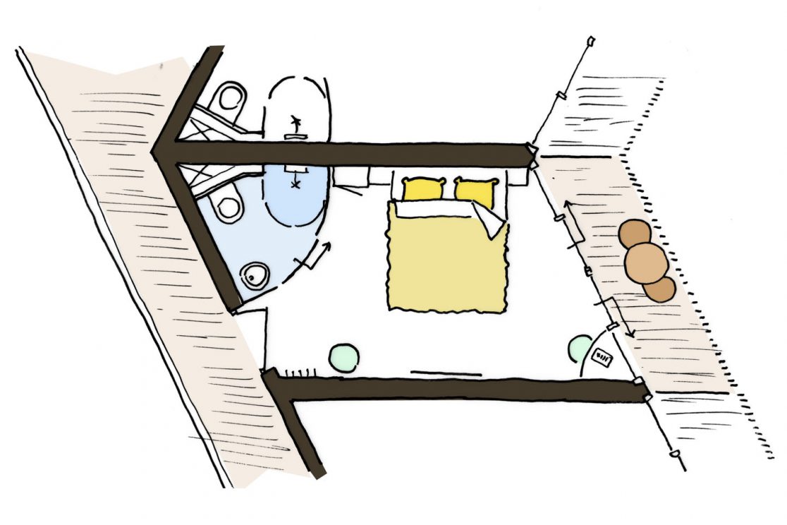 In addition to restaurant, a guest function will also be realized consisting of approx. 80-100 hotel rooms. The rooms are located in three stories. The hotel splits the covered outdoor space in two areas. A ‘busy’ part especially intended for children and activities in general, and a more tranquil for resting and enjoyment. Each room is double-sided and is opened up with an outside gallery, accessible by a lift. The rooms are equipped with a private balcony facing the tranquil part of the greenhouse. This allows guests to fully enjoy the green environment from their own space and perspective.