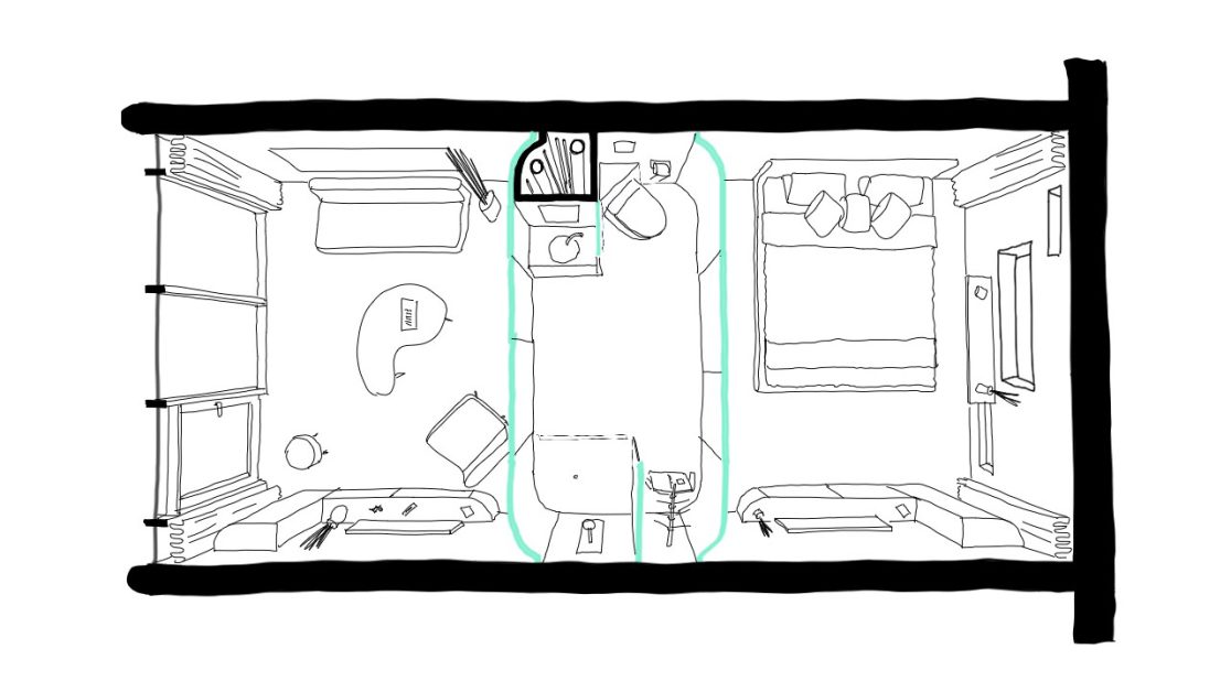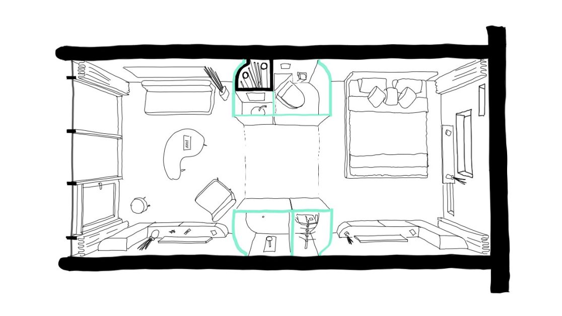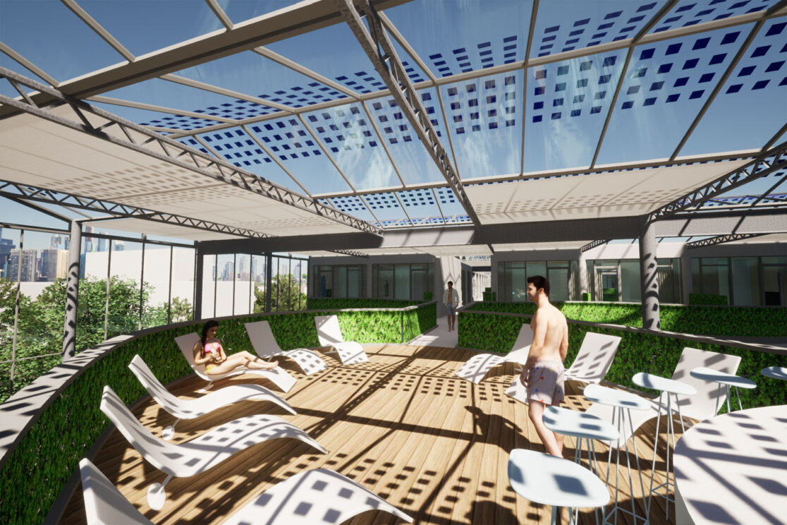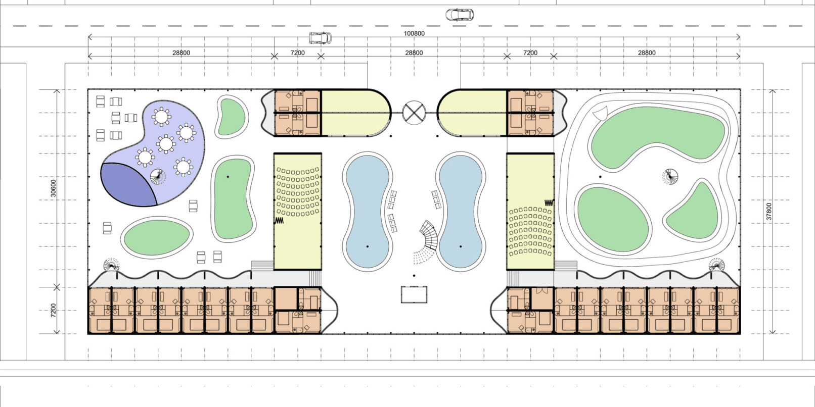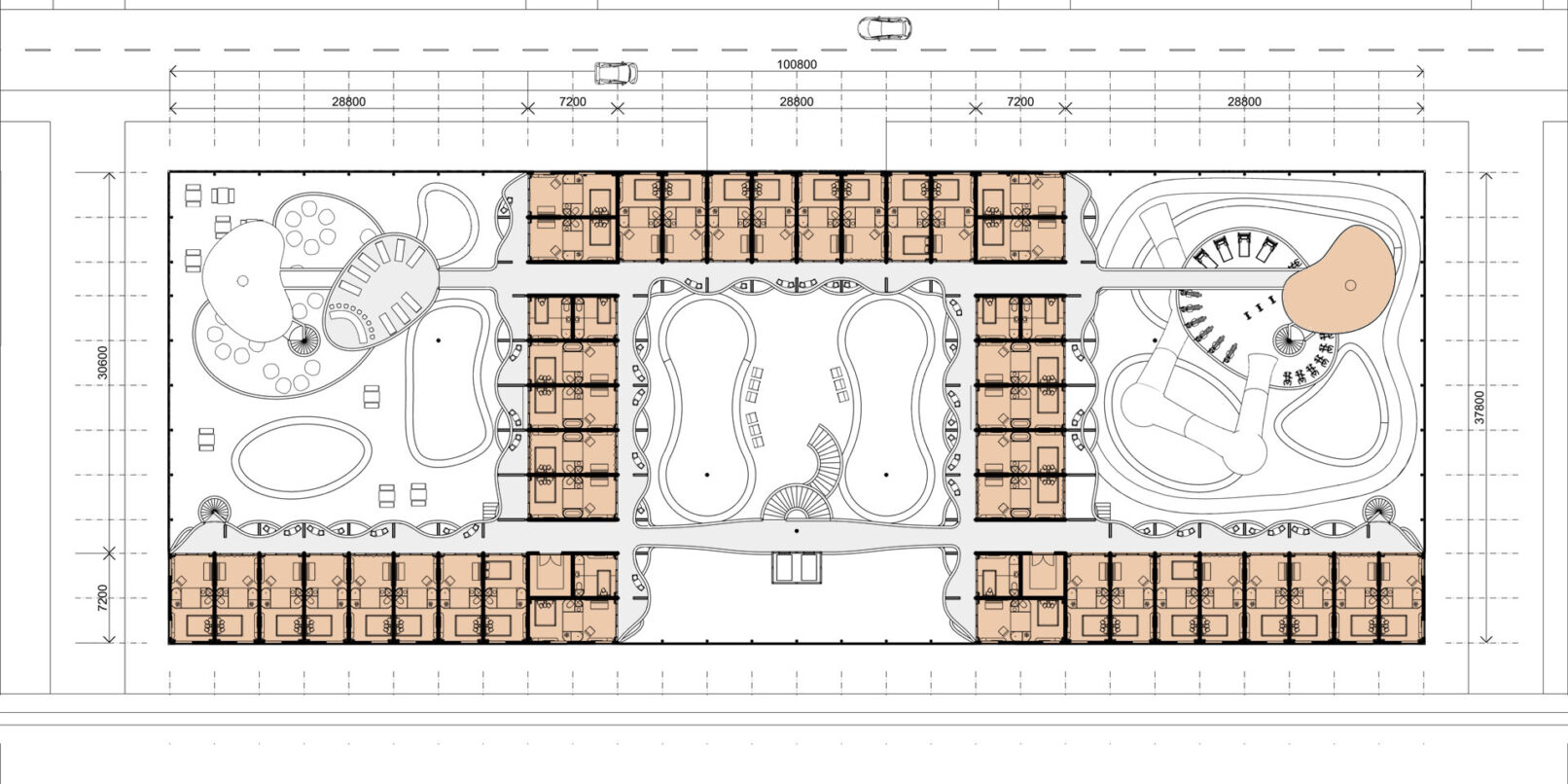 The rooms are organized around 3 atria with different themes that match their orientation – morning, noon and evening – and optimized the airflow and energy need throughout the day. Rooms have a gallery and balcony; a system that can be reversed and doubled. Although matching standard sizes in hotel and leisure – 24 m2 – the concept of the gallery/balcony makes it possible to have 2 rooms; with separate seating and sleeping, or with 2 bedrooms for extended privacy. Ideal for families and short-stay.