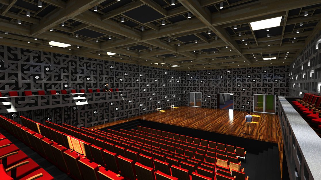 The acoustics are a flexible and optimized with a none repetitive diffusing and absorption structure, which is made out of smartly repeating elements for efficient production costs. Large spans are based on reciprocal frame structures to use their inherited diffusing capabilities and cost efficiency of smaller composing elements, as well as their esthetical qualities.